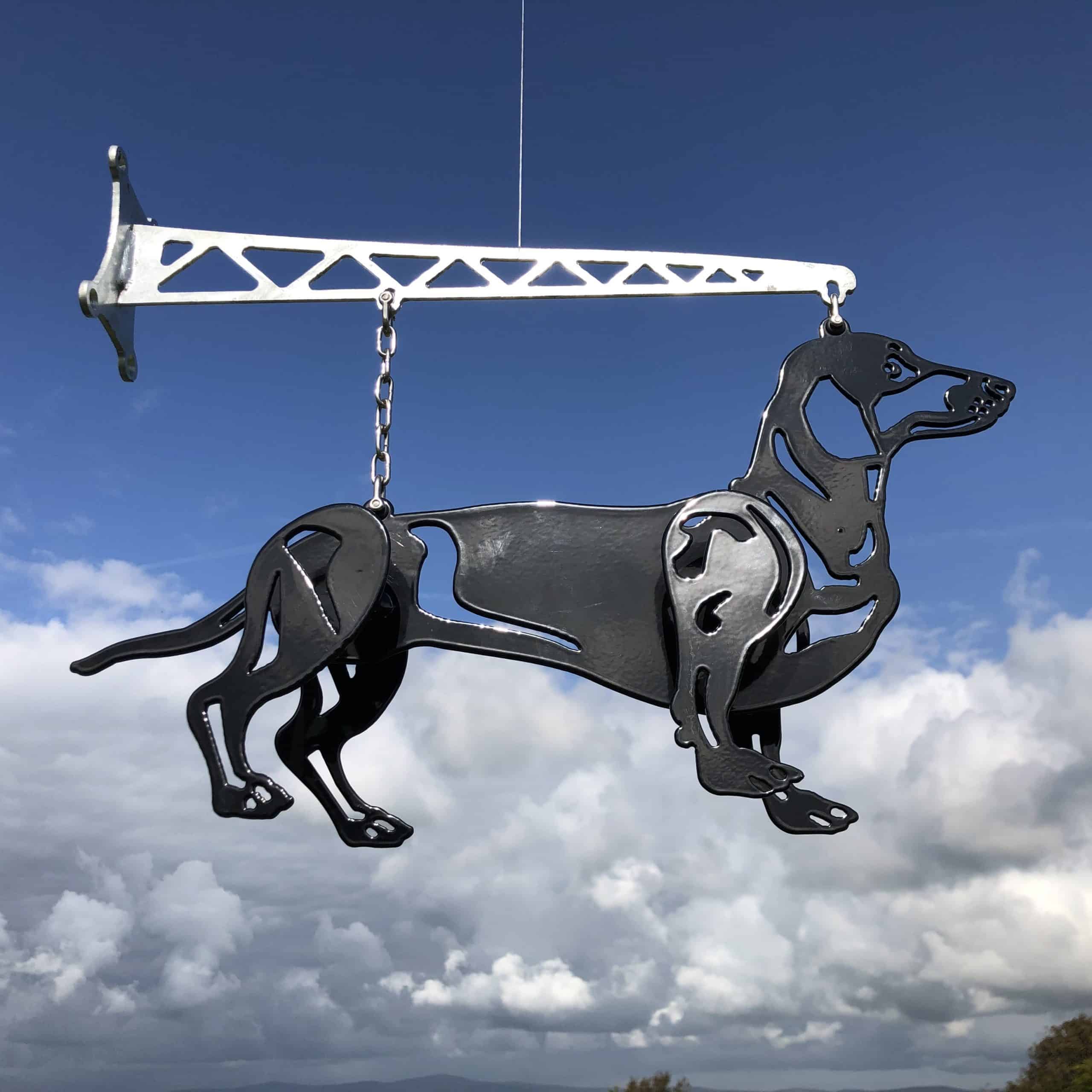 Our 3D Dachshund is a CNC profile cut out of mild steel that is shot blasted clean, powder coated with Zinc oxide and then coated with a black powder.